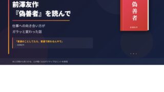 Book 前澤友作『偽善者』感想|仕事への向き合い方が変わった 前澤友作さんの著書『偽善者』の感想レビューです。身近な50人が語るリアルな前澤像から、妥協しない仕事への向き合い方、人に信頼されるリーダーの姿勢を学べます。「今のままでええんかな」と仕事に悩んでいる人に、ぜひ手にとって読んでほしい一冊です。 2026.03.29 Book